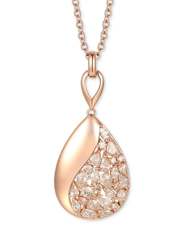 Le Vian Nude Diamond Teardrop Mixed Cut Cluster Adjustable 20" Pendant Necklace (1-1/4 ct. t.w.) in 14k Rose Gold