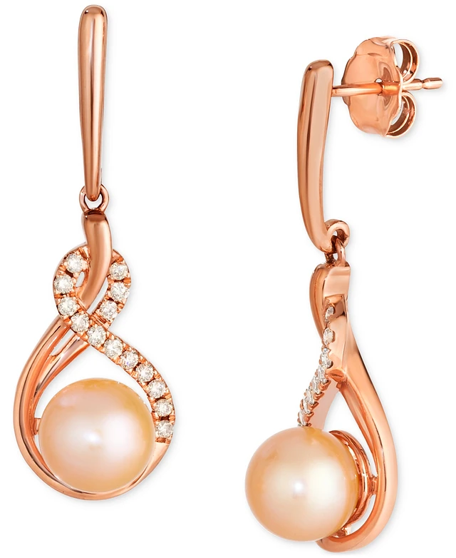 Le Vian Pink Freshwater Pearl (7mm) & Nude Diamond (1/5 ct. t.w.) Twist Drop Earrings in 14k Rose Gold