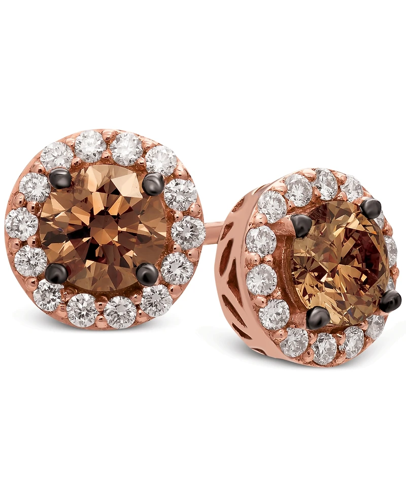 Style with a glamorous edge by finishing with these gorgeous Chocolate Diamond and Nude Diamond halo stud earrings from Le Vian.