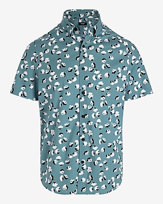 Leaf Print Cotton Stretch Short Sleeve Shirt