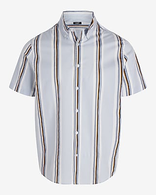 Textured Gradient Stripe Cotton Stretch Short Sleeve Shirt