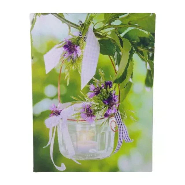 LED Lighted Tea Candle with Purple Flowers Canvas Wall Art 15.75" x 11.75"