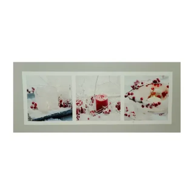 LED Winter Frost and Berry Burst Christmas Canvas Wall Art 11.75" x 27.5"