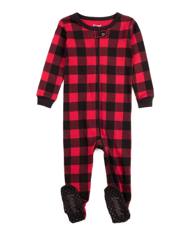 Leveret Baby Footed Cotton Pajamas - Plaid Black and Red - Matching Family Christmas Pajamas