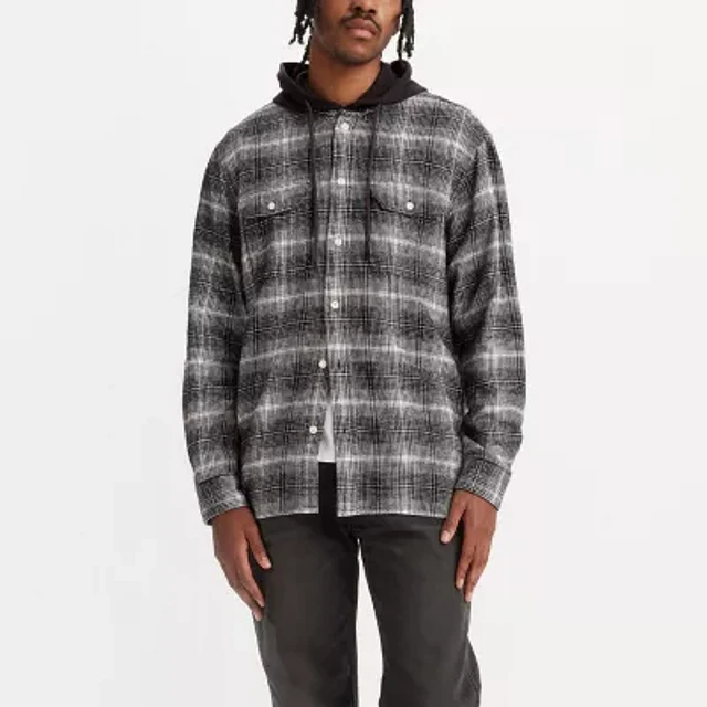 Levi's Mens Long Sleeve Flannel Hooded Button-Down Shirt