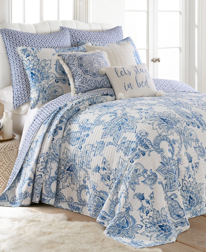 The Levtex Home Bennett Bedspread Set brings elegance with detailed florals and paisleys, reversing to a trellis design. Complete with matching shams, it layers soft cotton comfort and timeless style into your bedroom.