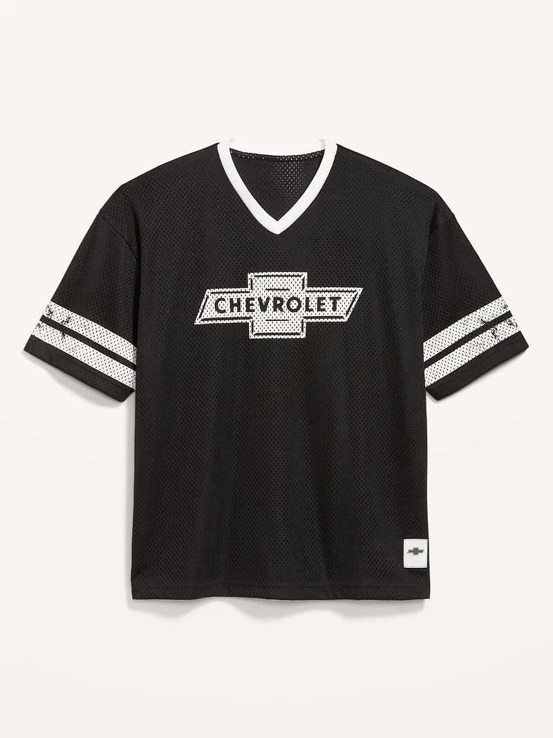 Licensed Graphic Cropped Mesh V-Neck T-Shirt in Ponce, PR