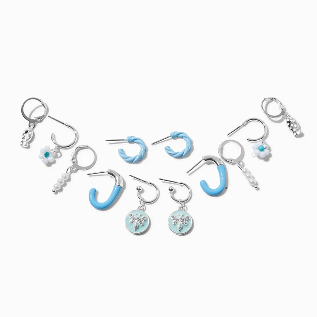 Light Blue Hoop Earring Stackables Set - 6 Pack
