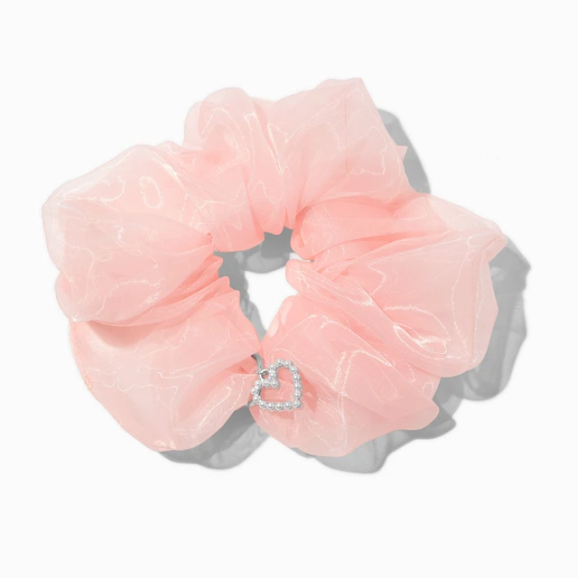Light Pink Organza Heart Charm Hair Scrunchie