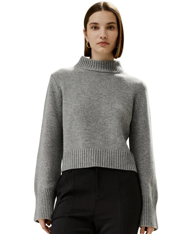 Lilysilk Women's Ribbed Collar and Hemline Wool Cashmere Sweater