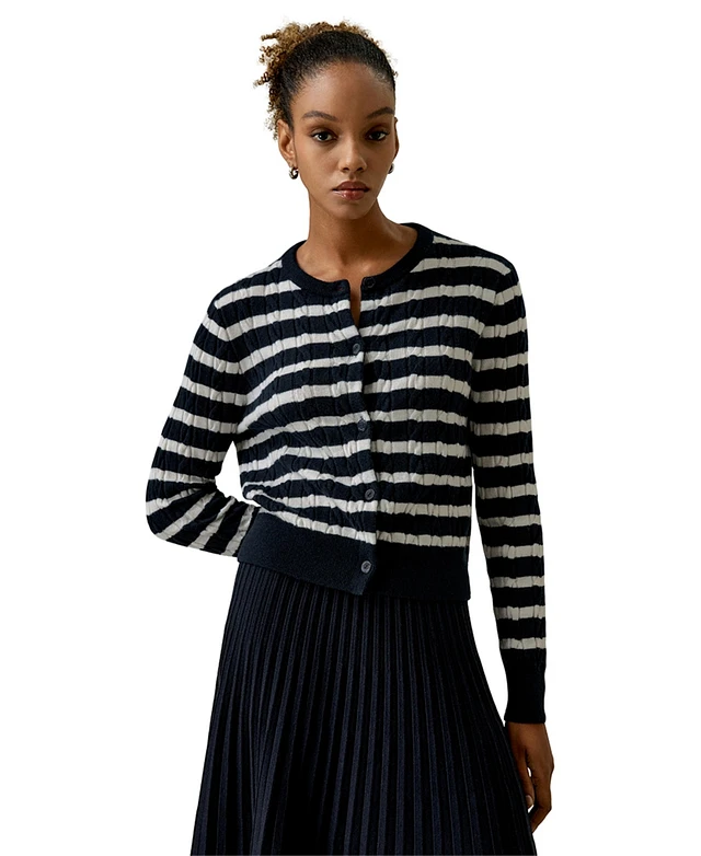 Lilysilk Women's Striped Cable-Knit Cashmere Cardigan