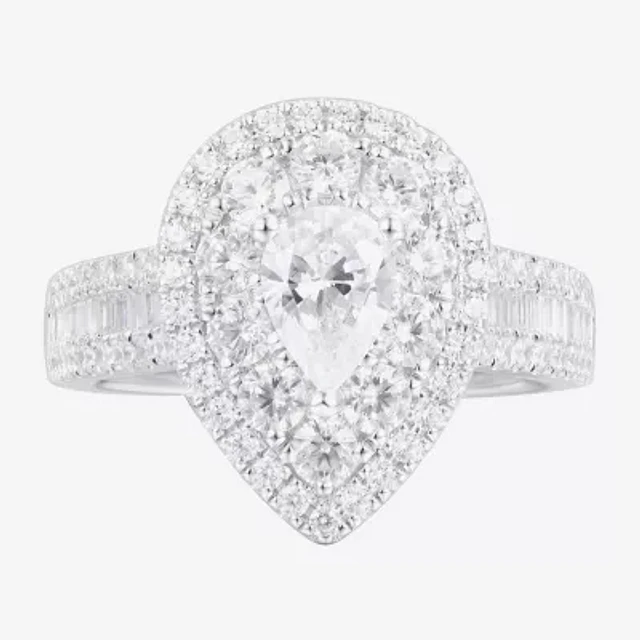 Limited Quantities! Womens 2 CT. T.W. Natural White Diamond 14K White Gold Pear Side Stone Halo Engagement Ring