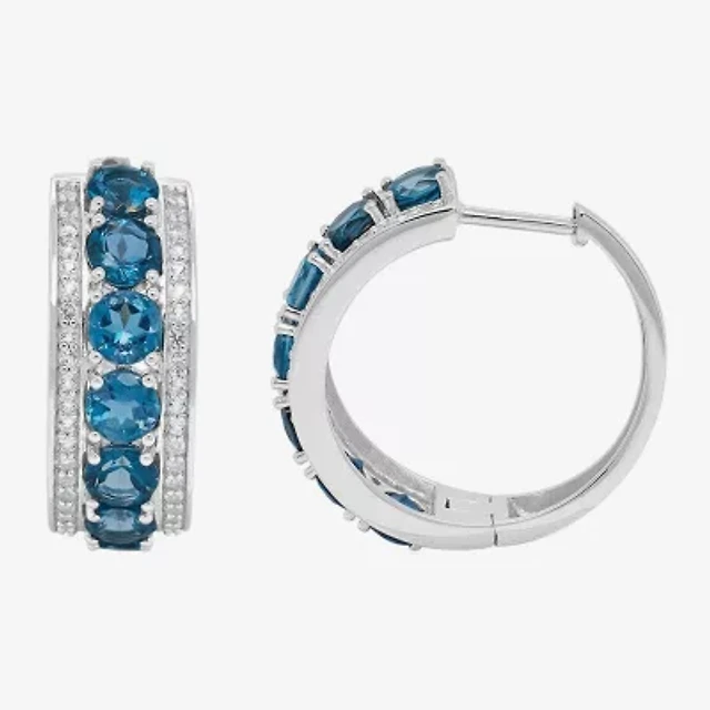 Limited Quantities! Womens Genuine Blue Topaz Sterling Silver 23.5mm Hoop Earrings