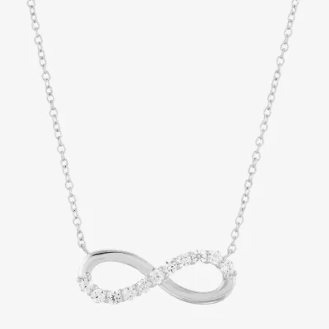 Limited Quantities! Womens Lab Created White Sapphire Sterling Silver Infinity 18 Inch Pendant Necklace