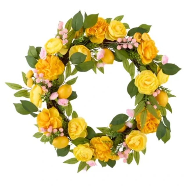 Linden Street 24in Lemon Peony And Pink Berry Wreath