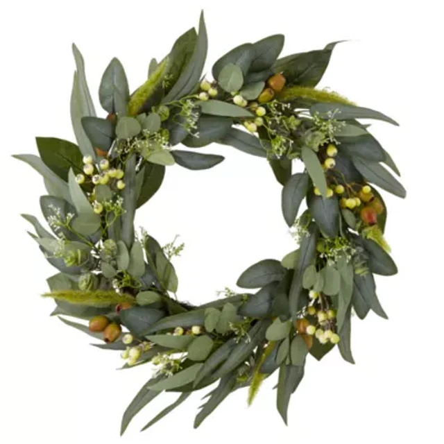 Northlight 20in Eucalyptus Leaves Botanical Green Wreath