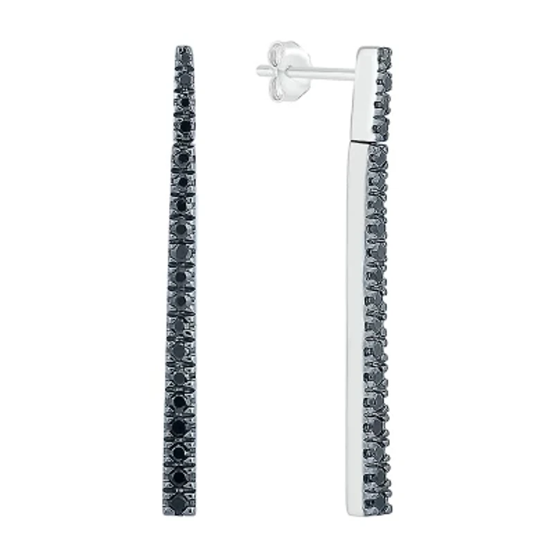 Linear Womens 1/3 CT. T.W. Natural Black Diamond Sterling Silver Drop Earrings