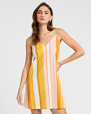 Striped Linen-Blend V-Neck Sleeveless Mini Shift Dress
