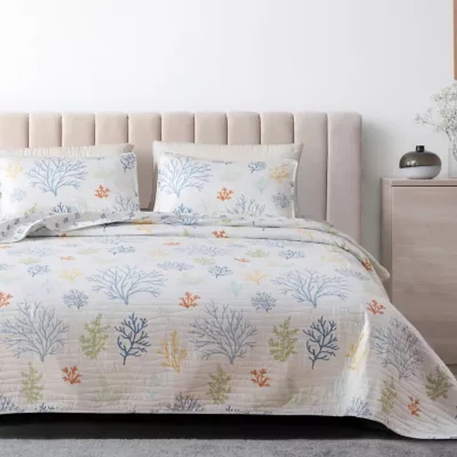 Linery Pastel Coral Pattern Reversible Quilt Set