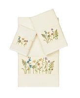 The Serenity Embellished Towel Collection features an intricate wildflower embroidery motif on a textured woven border. These soft and luxurious towels offer lasting absorbency and superior durability. 3PC Embellished Set includes 1 Bath Towel,1 Hand Towel, 1 Washcloth.