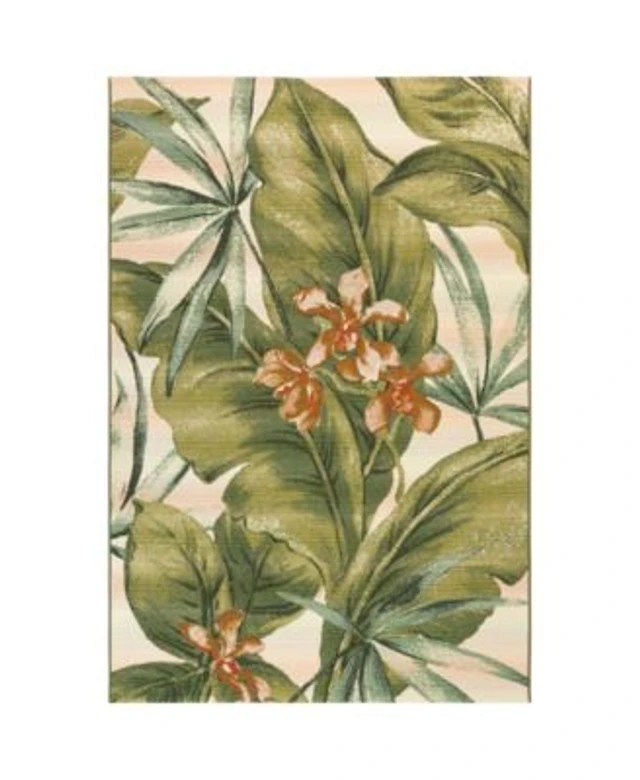 Liora Manne' Marina Tropical Leaf Cream 6'6" x 9'4" Outdoor Area Rug