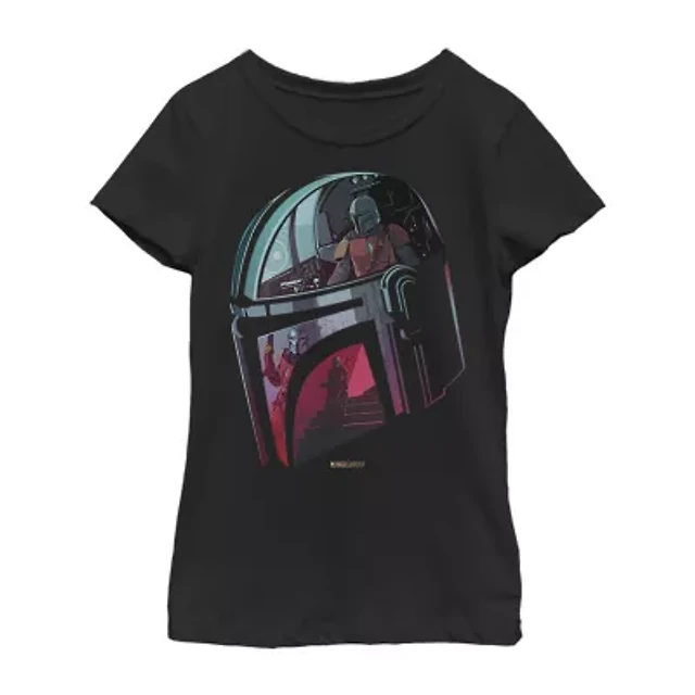 Little & Big Girls The Mandalorian Helmet Crew Neck Short Sleeve Graphic T-Shirt
