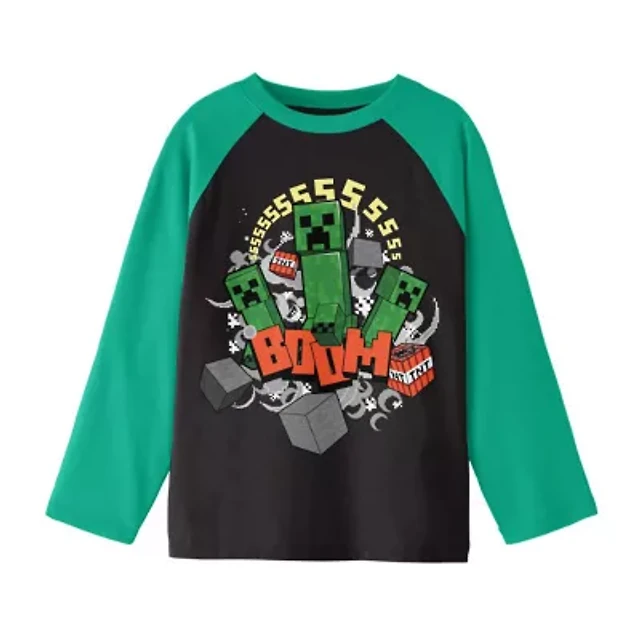 Little & Big Kid Boys Crew Neck Long Sleeve Regular Fit Minecraft Graphic T-Shirt