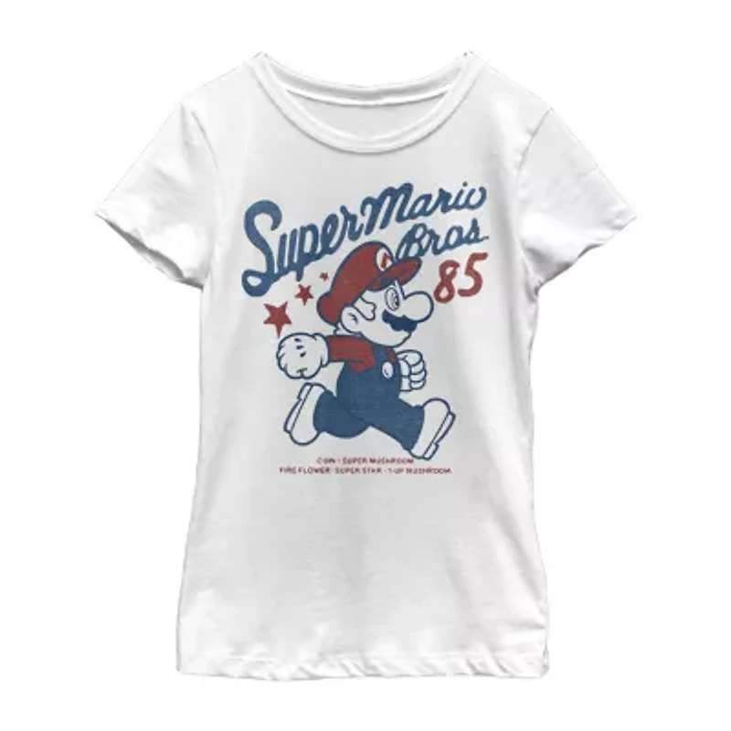 Little & Big Kid Girls Crew Neck Short Sleeve Regular Fit Super Mario Graphic T-Shirt