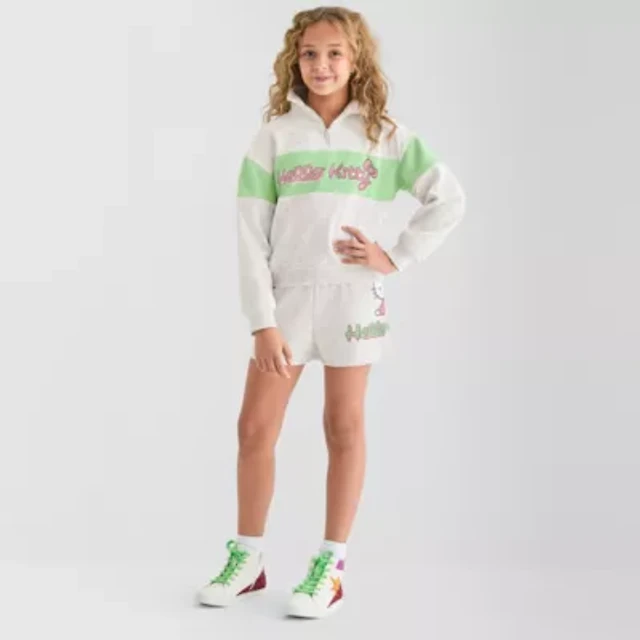 Little & Big Kid Girls Mock Neck Long Sleeve Hello Kitty Fleece Quarter-Zip Pullover Sweater