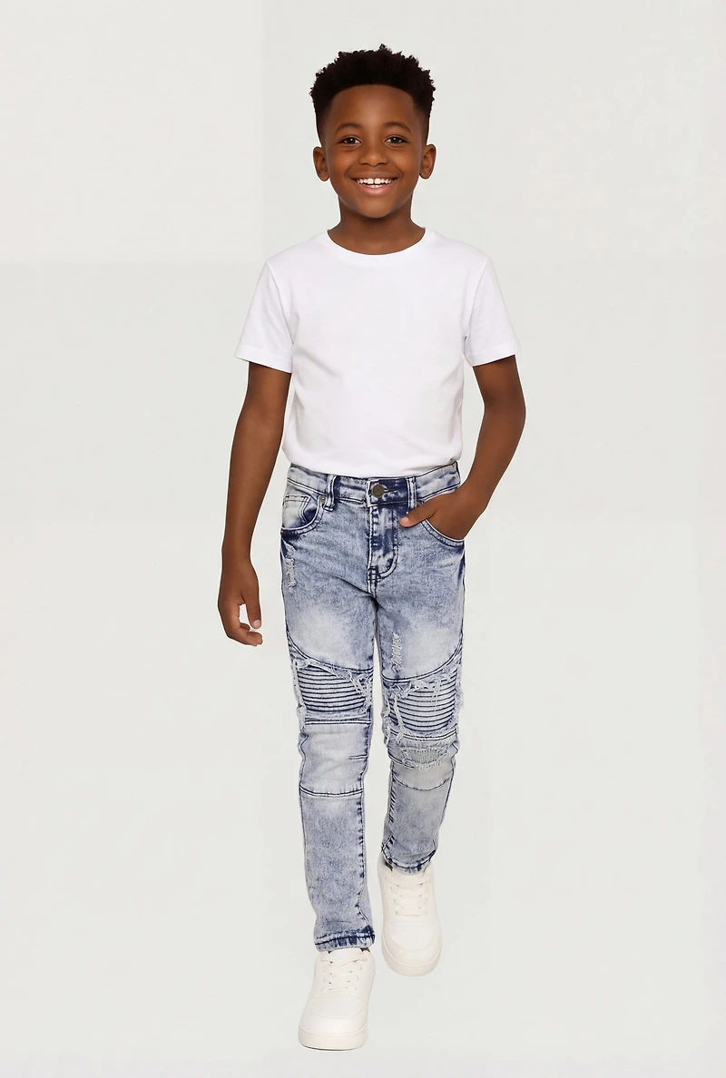 Little Boys Acid Wash Frayed Moto Jeans