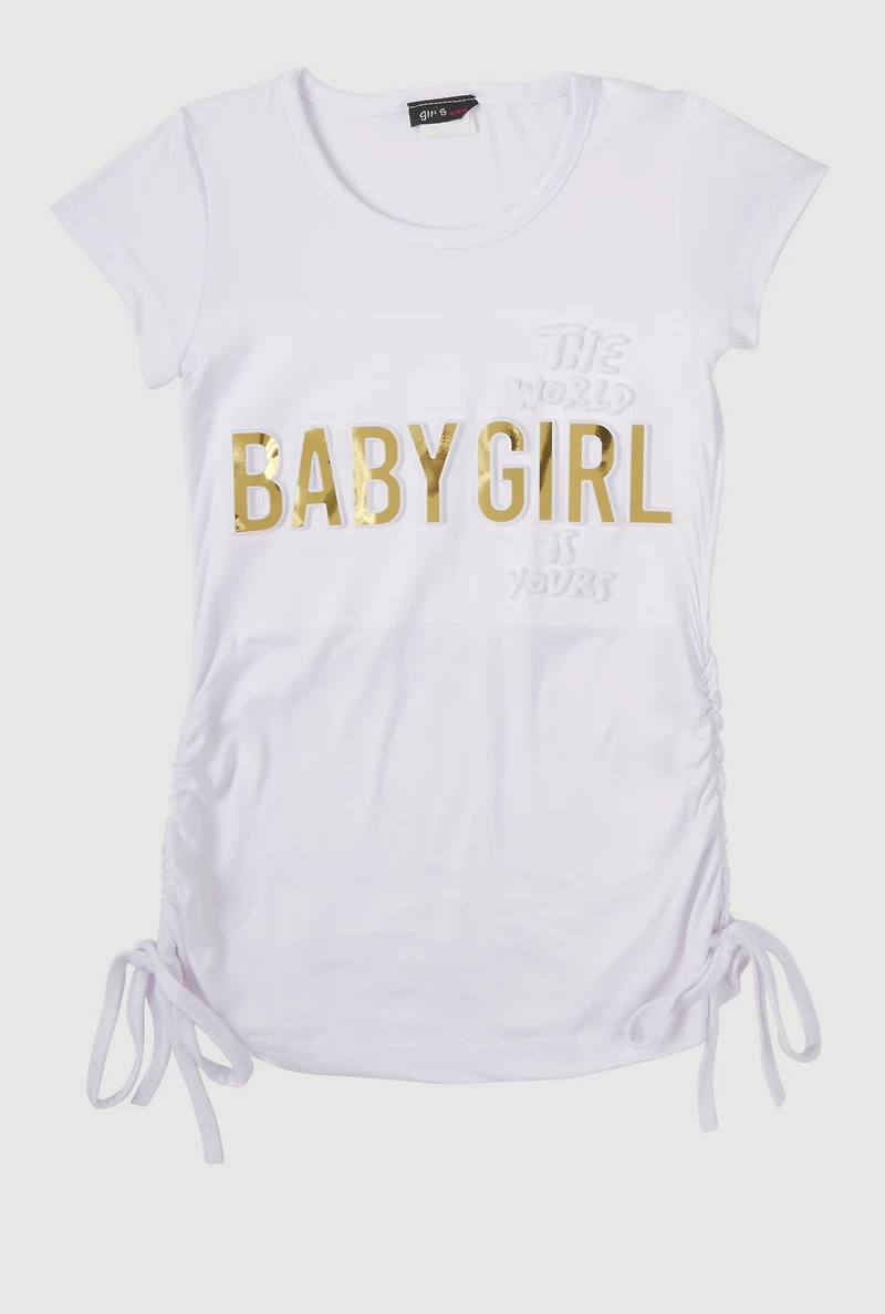 < p>Get ready to make your little girl shine with the Little Girls Baby Girl 3D Foil Graphic Tee. Featuring a fun and eye-catching "The World Baby Girl Is Yours" graphic, this tee is perfect for adding a touch of sparkle and confidence to her everyday wardrobe. Crafted with comfort in mind, the short sleeves and crew neckline make it ideal for playful days and casual outings. Whether she's exploring or just hanging out, this stylish tee is a must-have for her collection. Vibrant 3D foil graphic that stands out and adds a fun, trendy vibe Comfortable crew neck and short sleeves for all-day wear Soft, lightweight fabric perfect for active little girls Faux drawstring and ruching details add a cute, fashionable touch Easy to pair with jeans, skirts, or shorts for versatile styling Ideal for casual outings, playdates, or everyday adventures Content and Care Material: 95% Polyester, 5% Spandex Care Instructions: Machine Wash, Tumble Dry Country Of Origin: China Rainbow Item Number 1634066591601 WHITE - 1634066591601010