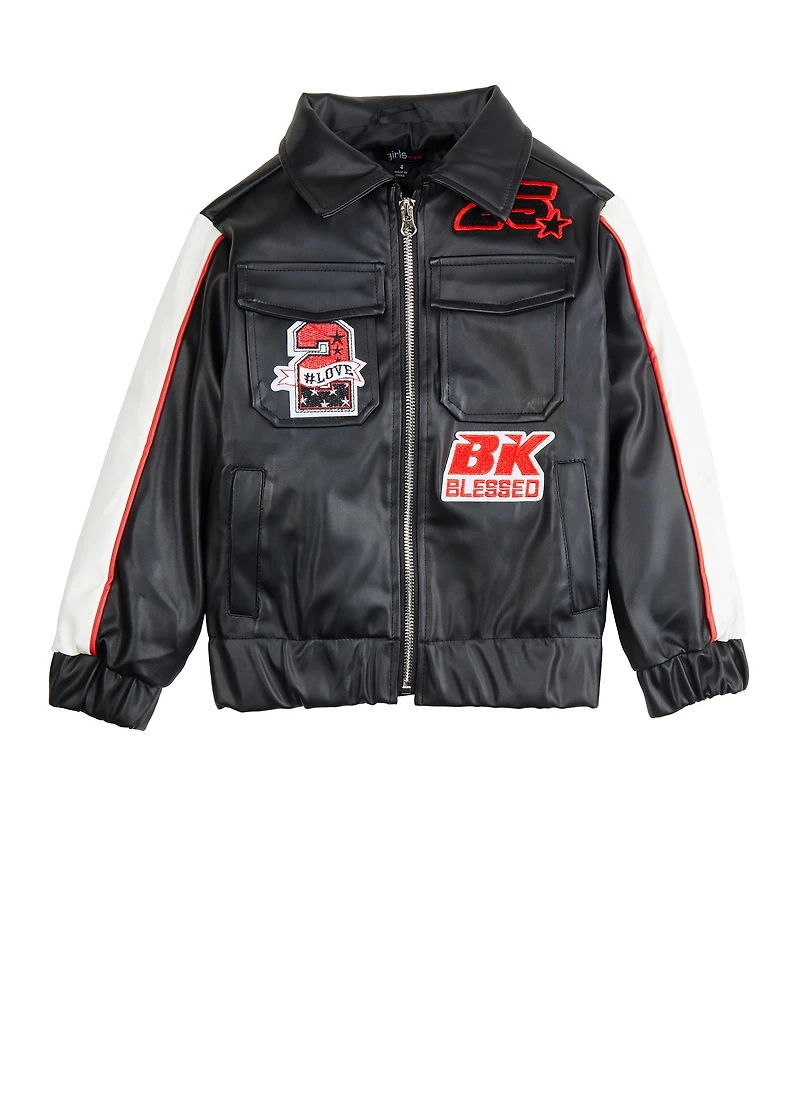 Little Girls Color Block Graphic Patch Moto Jacket