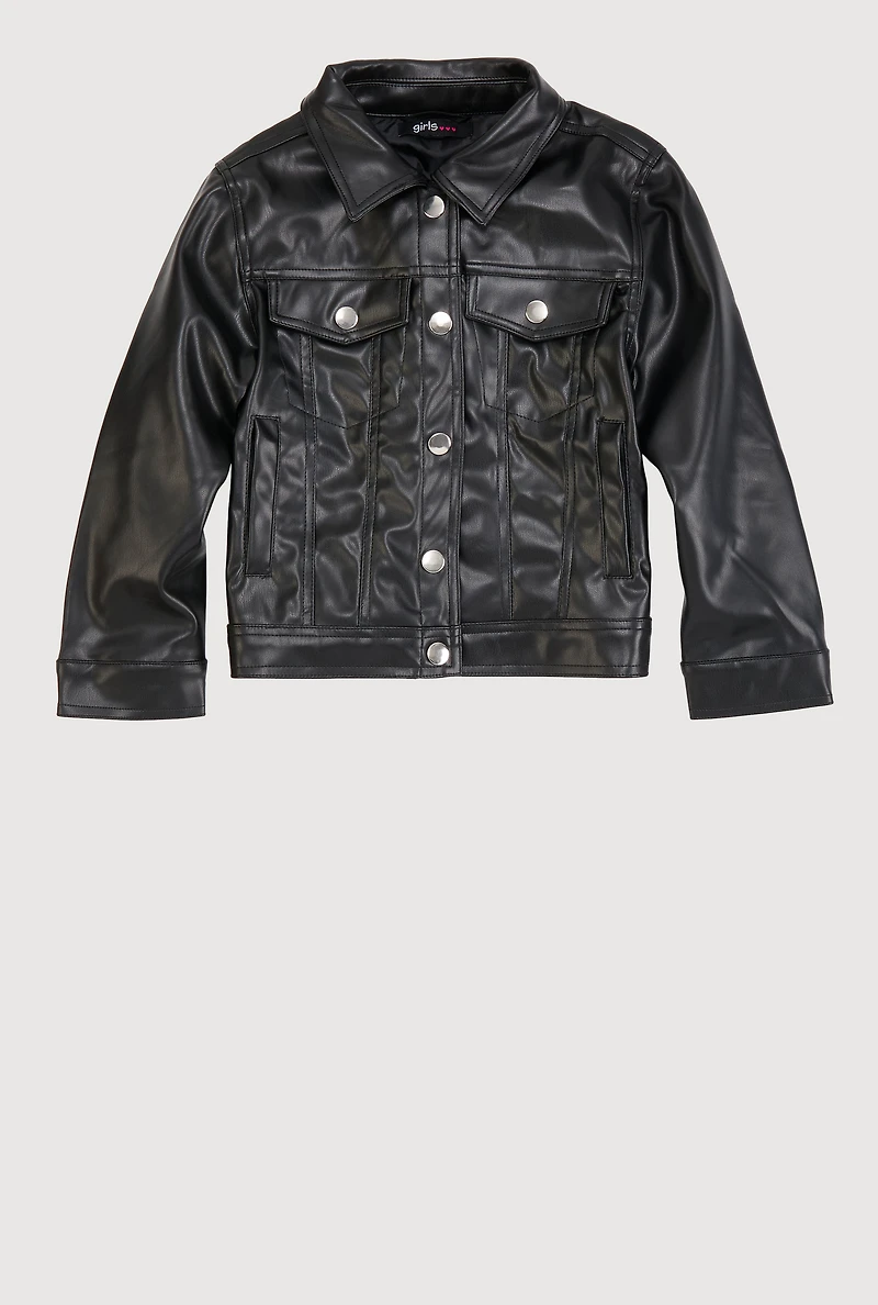 Little Girls Faux Leather Button Front Jacket