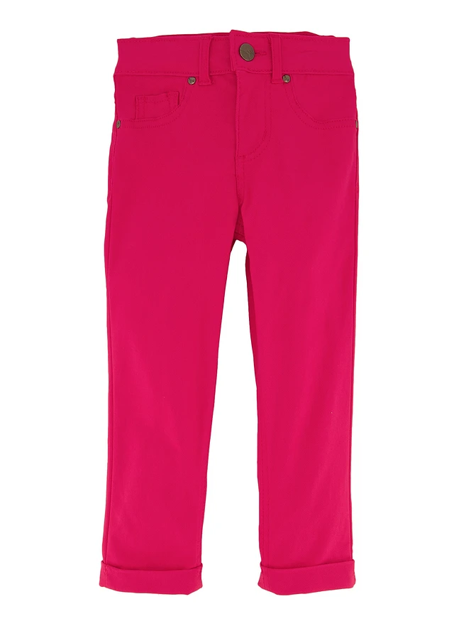 Little Girls Rolled Cuff Hyperstretch Pants, Pink, Size 5