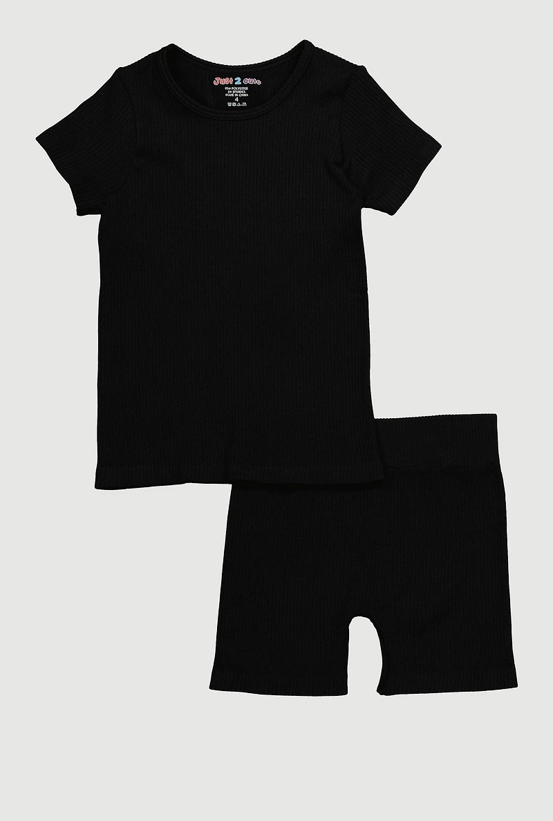 Little Girls Seamless Ribbed Knit Tee and Biker Shorts Set
