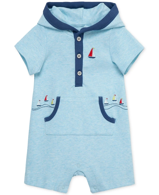Little Me Baby Boys Breezy Cotton Hooded Romper