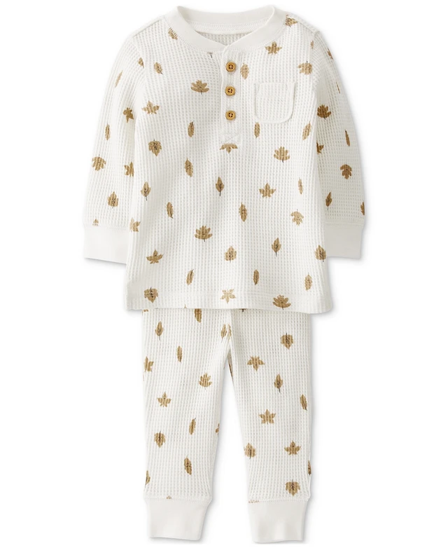 Little Planet by Carter's Baby Waffle-Knit Leaves-Print Top & Pants, 2 Piece Set
