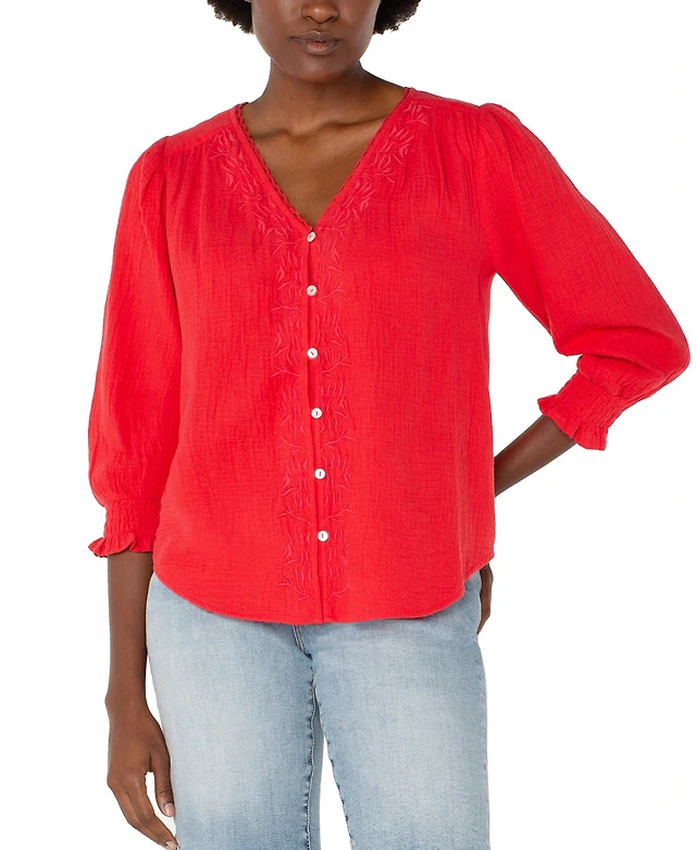 Liverpool Los Angeles Women's 3/4 Sleeve Embroidered Top