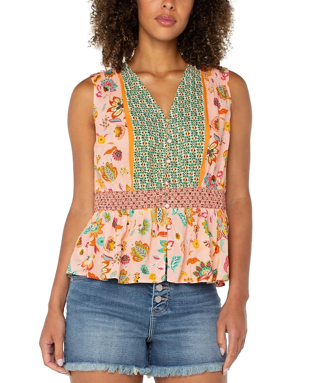 Liverpool Los Angeles Women's Printed Sleeveless Peplum Top