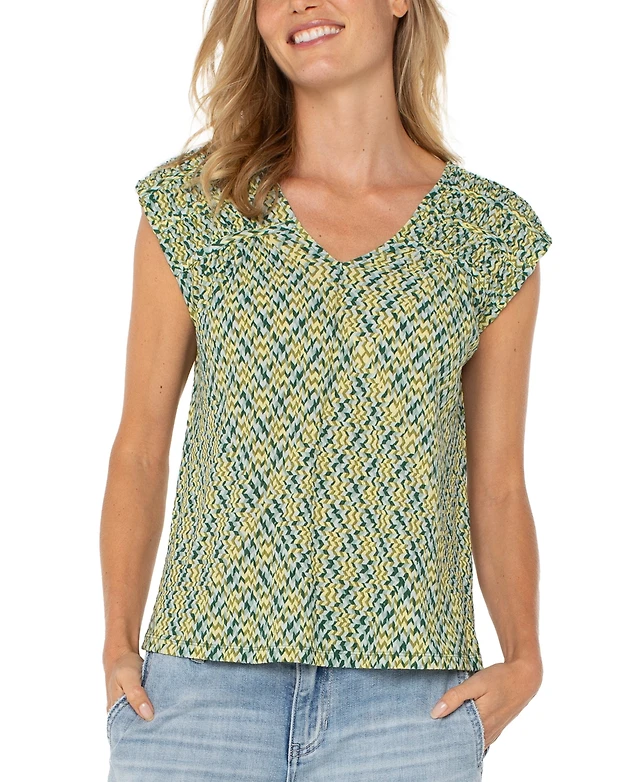 Liverpool Los Angeles Petite Printed Tie-Back Dolman-Sleeve Top