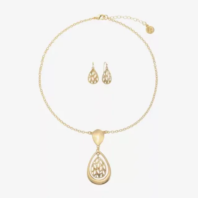 Liz Claiborne Filigree Pendant Necklace And Teardrop Earring Womens 2-pc. Jewelry Set