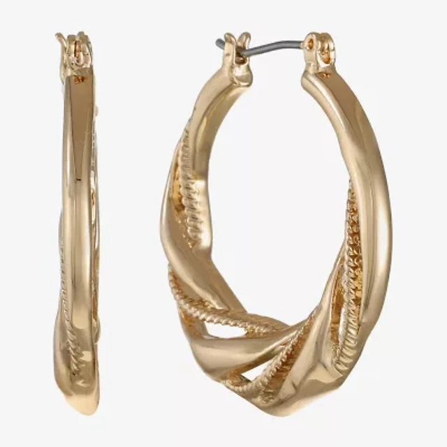 Liz Claiborne Gold Tone Twist Womens 29mm Hypoallergenic Hoop Earrings