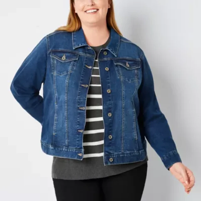 Liz Claiborne Womens Plus Denim Midweight Jacket