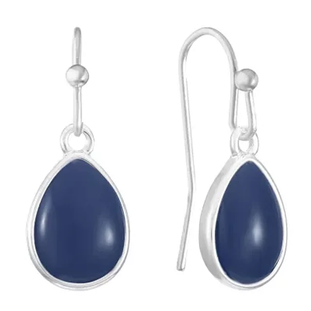 Liz Claiborne Navy And Silver Tone Blue Drop Earrings