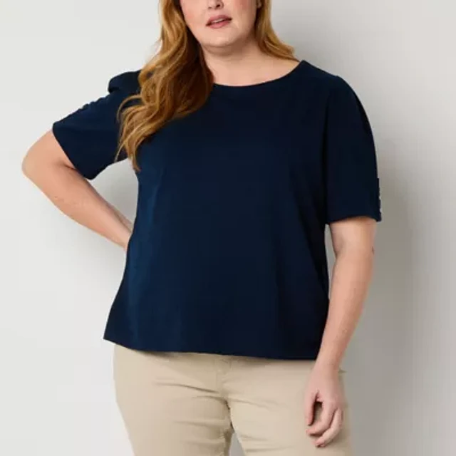 Liz Claiborne Womens Crew Neck Short Sleeve Plus Blouse