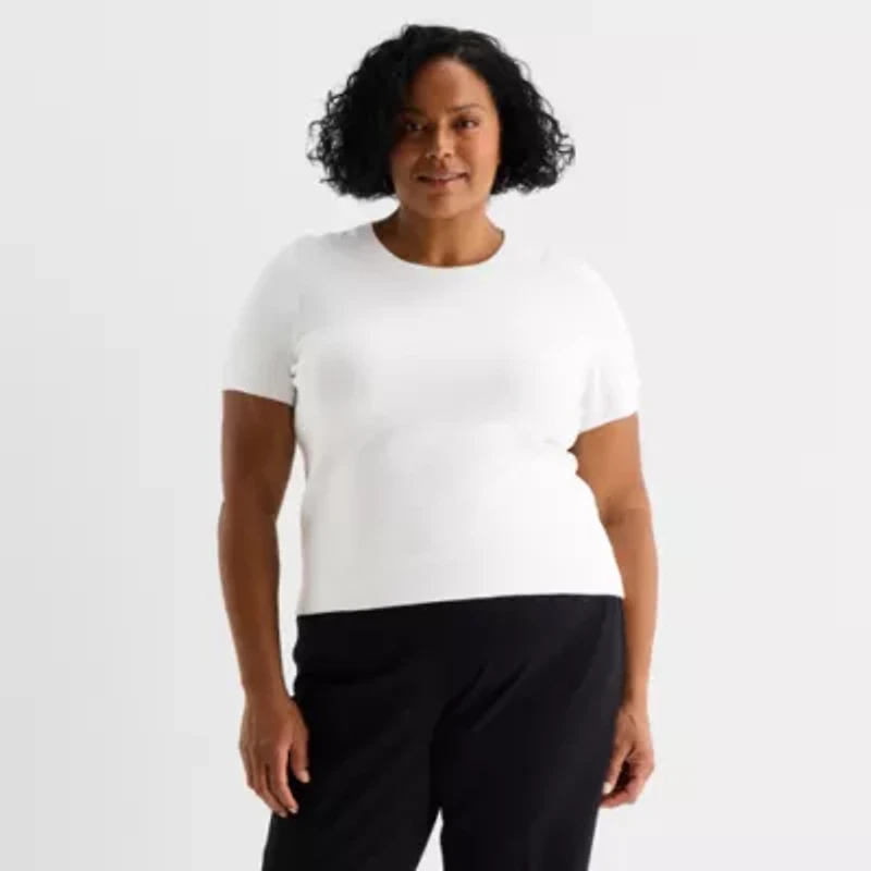 Liz Claiborne Plus Womens Crew Neck Short Sleeve Pullover Sweater