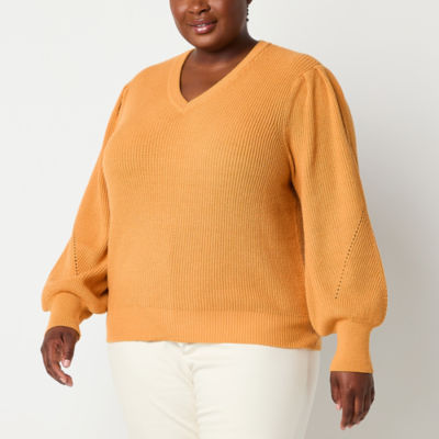 Liz Claiborne Plus Womens V Neck Long Sleeve Pullover Sweater