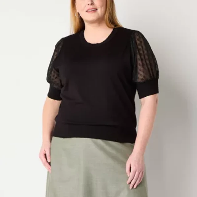 Liz Claiborne Plus Womens Round Neck Short Sleeve Pullover Sweater
