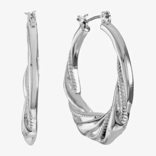 Liz Claiborne Silver Tone Textured Womens 29mm Hypoallergenic Hoop Earrings