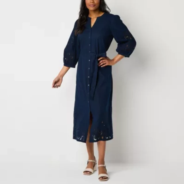 Liz Claiborne Womens 3/4 Sleeve A-Line Dress